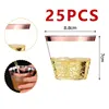 25pcs Disposable Plastic Cups Clear Champagne Flutes Silver Rim Mugs Fancy Wedding Cocktail Mug Bubble Tea Red Wine Glasses