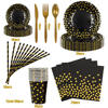 Black&Gold Birthday Party Decoration Golden Dot Disposable Party Tableware Set Paper Plates Cups Napkins Simple Fashion Party