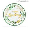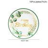 Green Eucalyptus Leaf Disposable Tableware Set Paper Plate Cup Napkin Kids Adult Birthday Supplies Hawaiian Summer Party Decor