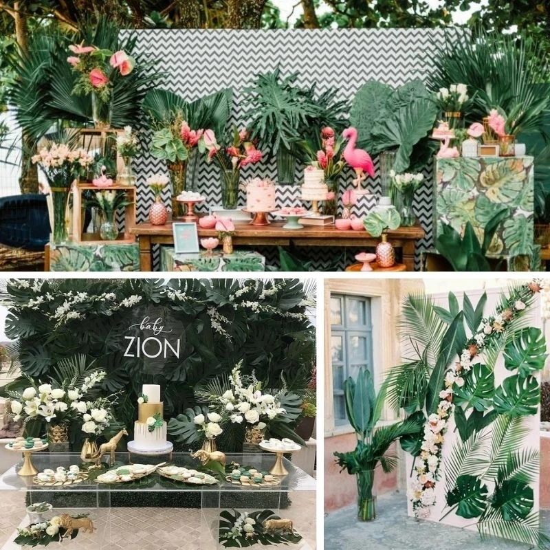 Tropical Palm Leaves Artificial Plants Summer Wedding Hawaiian Theme Party Decor Fake Plant Safari Jungle Home Garden Decoration